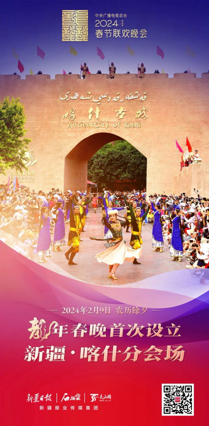 石榴云快讯1月4日,记者从中央广播电视总台《2024年春节联欢晚会》分会场发布活动获悉:本届春晚将在新疆喀什设立分会场,为历年春晚首次。