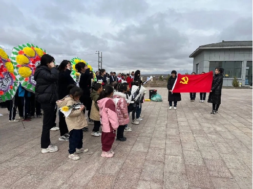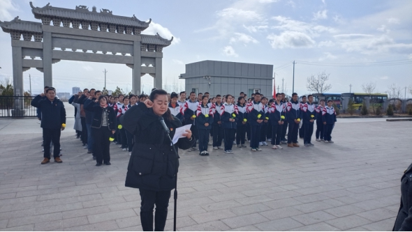 4月3日上午,和静县第十二小学党支部以党建带团建,组织党员及团员、少先队员代表开展清明祭扫活动。