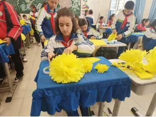 活动三:祭英烈。老师带领学生动手做菊花,为烈士扫墓。(通讯员:李雪林)