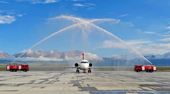 和静巴音布鲁克机场用民航最高礼遇“过水门”仪式迎接航班顺利抵达。当天上午10点20分,在巴音布鲁克机场候机楼举办演示验证飞行仪式。新疆机场集团党委书记、董事长陶润文出席仪式并致辞。中国商飞客服公司副总经理佟宇、自治区发展和改革委员会交通处副处长田伟华、民航新疆管理局飞标处一级主任科员宇翔、自治州人民政府副州长田照敏、和静县委书记邱东以及自治州宣传、发改、水利、文旅、自然资源、林草等相关部门负责同志出席仪式。