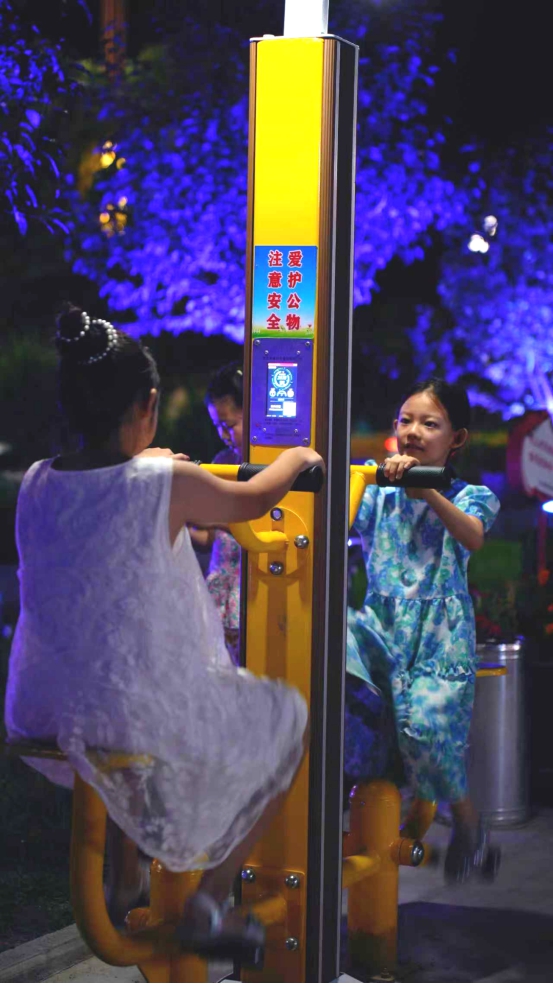 群众藤桂兰对蓝天市政场地赞不绝口,她表示:“这里环境整洁、灯光充足,还配备了完善的体育设施,每到夜晚都有许多大人小孩来此活动,大家既能跳广场舞,又能锻炼身体。我们在这里活动已经两个月了,参与的人越来越多,场地不仅有水、卫生间和休息区域,各方面都让大家感到非常满意和开心。”