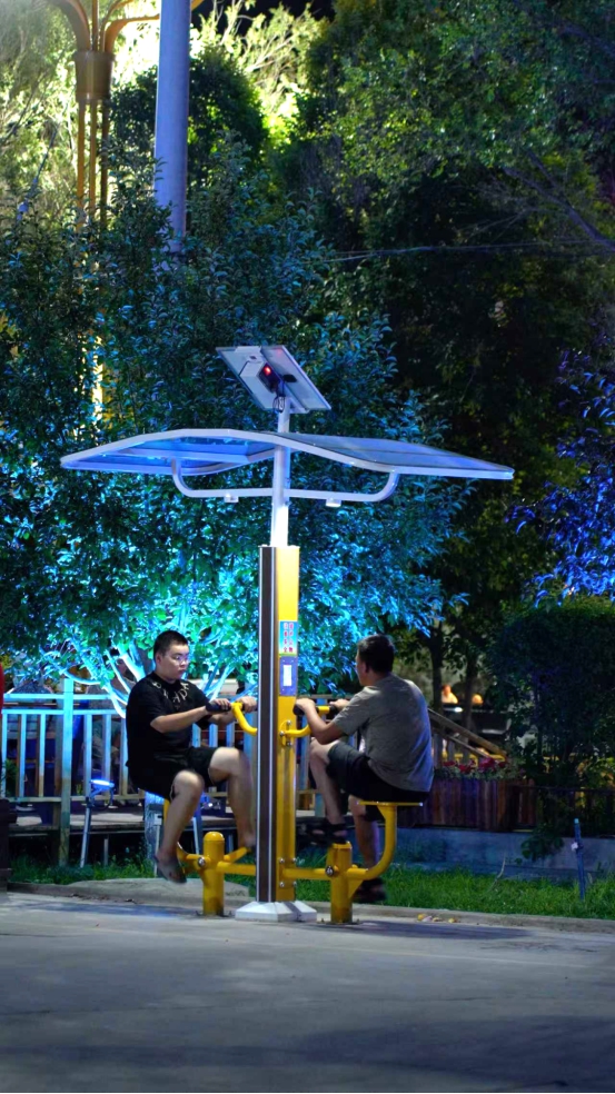 走进健康文化广场,新能源停车区映入眼帘,作为该院子的一大亮点,规划建设8个标准停车位,配置5-7组快充、慢充充电设施,可满足8辆新能源汽车同时充电。智能健身区为群众带来了现代化健身体验。器材顶部集成配备太阳能板的遮阳棚,立柱两侧设有信息显示屏及扬声器,支持无线网络信号传输与多媒体播放。群众在此强身健体的同时,还能感受文化宣传的氛围,提升精神文明素养。