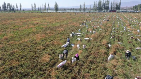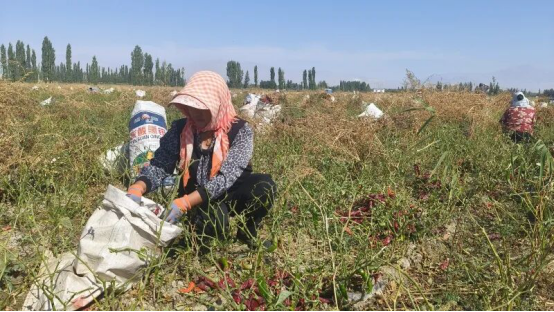 “人工采摘既能保障辣椒品相、降低破损率,又能带动村民就业增收。”哈尔乌苏村党支部书记敬光旭介绍道,“今年采摘期比去年提前了10天,种植户们抢抓时机,争取卖个好价钱。全村辣椒预计9月25日前完成采收。”从制种育苗到移栽管护,从机械采摘到初加工,哈尔乌苏村已构建起完整的辣椒产业链,小辣椒真正成了大产业。