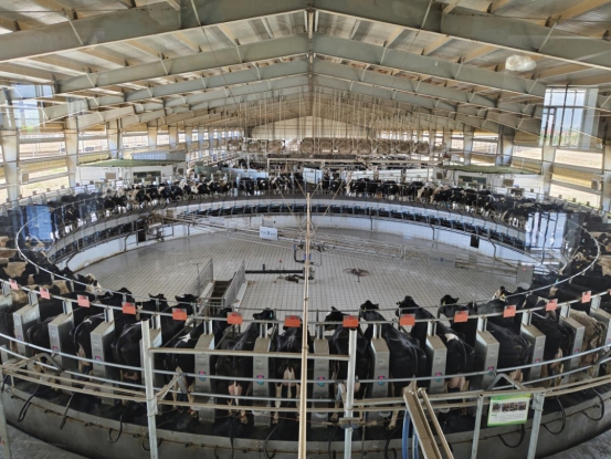 走进天瑞祥牧场,这座挂牌“3A级旅游景区”的现代化牧场,早已突破传统养殖的边界,成为集研学、科普与体验于一体的特色旅游目的地。景区内,“牛奶诞生之旅”主题路线人气十足:游客跟着讲解员走进智能挤奶大厅,透过玻璃幕墙看机械臂精准完成挤奶、检测、输送全流程;在科普展厅里,动态沙盘直观呈现从饲草种植到乳制品加工的全产业链;亲子家庭还能亲手参与“小小饲养员”体验活动,给牛犊喂食、记录生长数据,在互动中读懂现代化养殖的科技密码。这里不仅是游客的“打卡地”,更成为中小学的“校外研学基地”,每年接待数千名学生,让“一杯牛奶的旅程”成为生动的劳动教育与科普课堂。