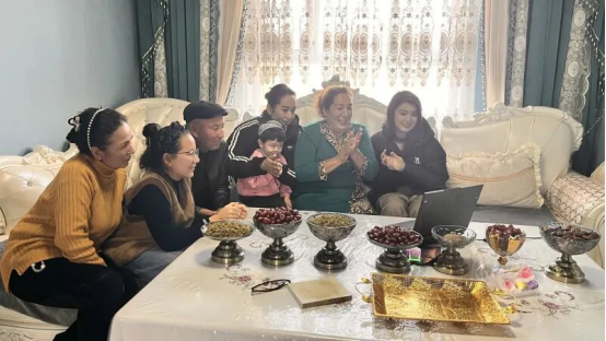 阿不里孜·买开家人在观看比赛直播。通讯员 阿斯彦·吐尔逊 摄