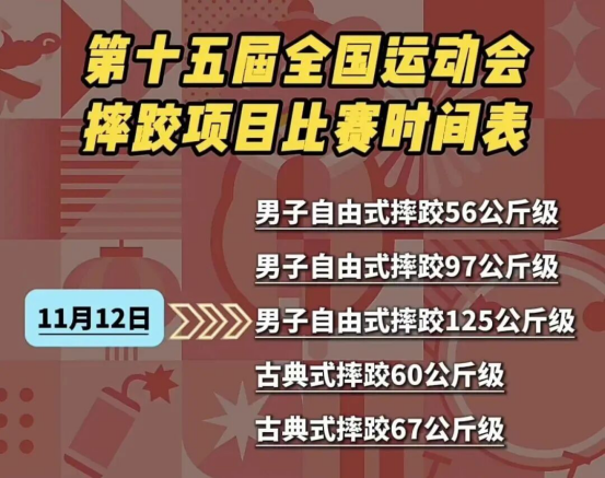 中华人民共和国第十五届运动会摔跤比赛直播(扫码观看直播)