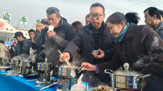 活动现场暖意融融、人气爆棚。和静县东归乌兰牧骑队带来的精彩演出点燃全场,灵动的群舞、嘹亮的独唱、悠扬的呼麦、原汁原味的萨吾尔登轮番上演,将东归文化与草原风情展现得淋漓尽致,台下观众掌声、喝彩声此起彼伏。免费开放的“东归印象火锅”品尝区前排起了长队,鲜嫩的巴音布鲁克羊肉在沸水中翻滚,香气四溢,不少市民游客尝过之后当即敲定订单,销售点内选购、称重、打包的身影络绎不绝,热闹非凡。
