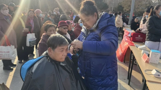 活动现场,县卫健委、司法局、教育局等单位结合职能设摊,提供政策宣讲、法律咨询、健康义诊等“一站式”服务。义诊区前排起长队,医护志愿者为老人测量血压、解读体检报告,耐心解答健康疑问;爱心理发区的理发师手法娴熟,为环卫工人、外卖骑手、老人等群体免费修剪头发,传递着城市温度。