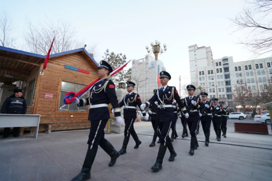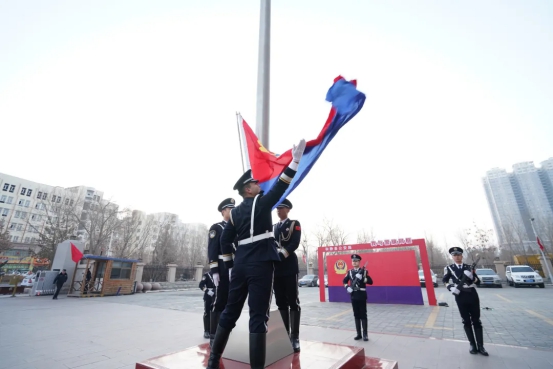 上午10时,仪式正式开始。全体人员警容严整、精神抖擞,在旗台前整齐列队。护旗手护卫着中国人民警察警旗,迈着铿锵有力的步伐走向升旗台。伴随着雄壮激昂的《中国人民警察警歌》,鲜艳的警旗冉冉升起,全体民警面向警旗庄严敬礼,表达对公安事业的无限忠诚与热爱。