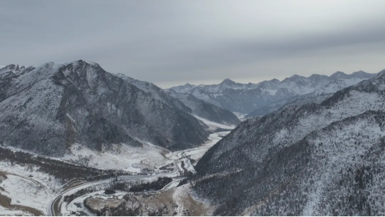 连绵起伏的天山山脉被厚厚的积雪层层裹覆,往日里碧波荡漾、舒展蜿蜒的开都河,此刻凝结成一条晶莹的银色丝带,在茫茫雪原上曲折盘绕,清晰勾勒出冬日大地独有的肌理与脉络。当日落余晖为洁白的雪山镀上一层暖橙色调,暮色中的巴音布鲁克,更添几分静谧悠远。