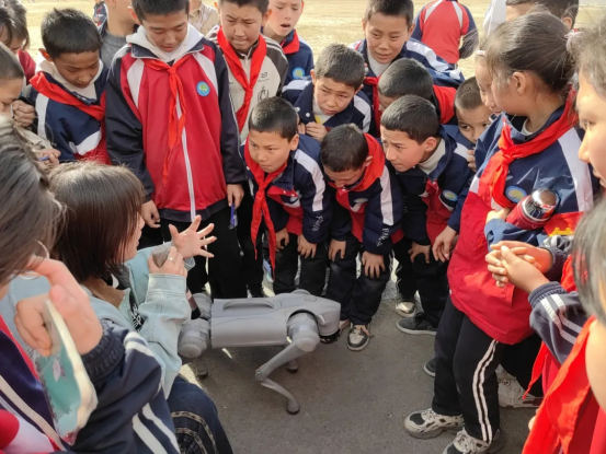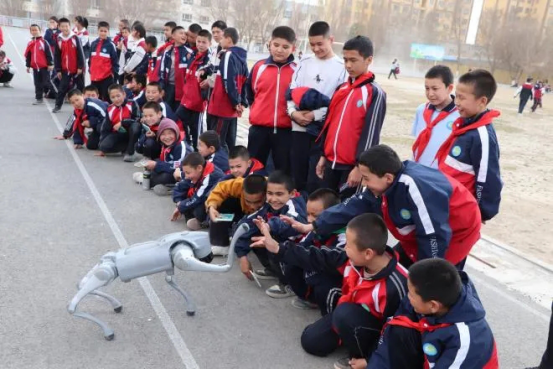 智能机器狗展示是活动亮点,将现场氛围推向高潮。志愿者操控下,机器狗灵活完成行进、奔跑等动作并与同学们互动,展现了人工智能与机器人技术成果,引得各族同学围拢提问。“这个机器狗为什么能听懂指令?”志愿者用通俗语言答疑解惑,点燃了大家的求知欲。“以前只在电视上见过,今天近距离接触还学到知识,太有意义了。”八年级学生乃孜热·吾拉依木兴奋地说。
