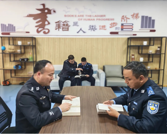 法制大队采取集中学习与自主阅读、分享交流相结合的方式,精心挑选政治理论、党史党建、公安业务、法律知识、经典名著等各类书籍,组织党员民辅警开展沉浸式阅读。大家静心研读、认真笔记,围绕《习近平谈治国理政》、公安英模事迹读本、执法业务规范等重点内容,深入学习党的理论方针和公安先辈的忠诚品格。在读书分享环节,党员民辅警踊跃发言,结合自身工作经历分享读书心得、推荐优质书目、交流学习体会。大家一致表示,通过读书不仅丰富了理论知识储备,更坚定理想信念,为依法履职、规范执法打下了坚实的思想基础。