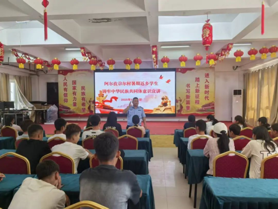 活动中,以“凝聚共识,厚植家国情怀”为主题,结合村里多民族聚居的实际,用通俗易懂的语言讲述了中华民族共同体的深刻内涵。分享了村民互帮互助、共同发展的故事,鼓励返乡学生们发挥知识优势,主动参与村里的民族团结进步事业。