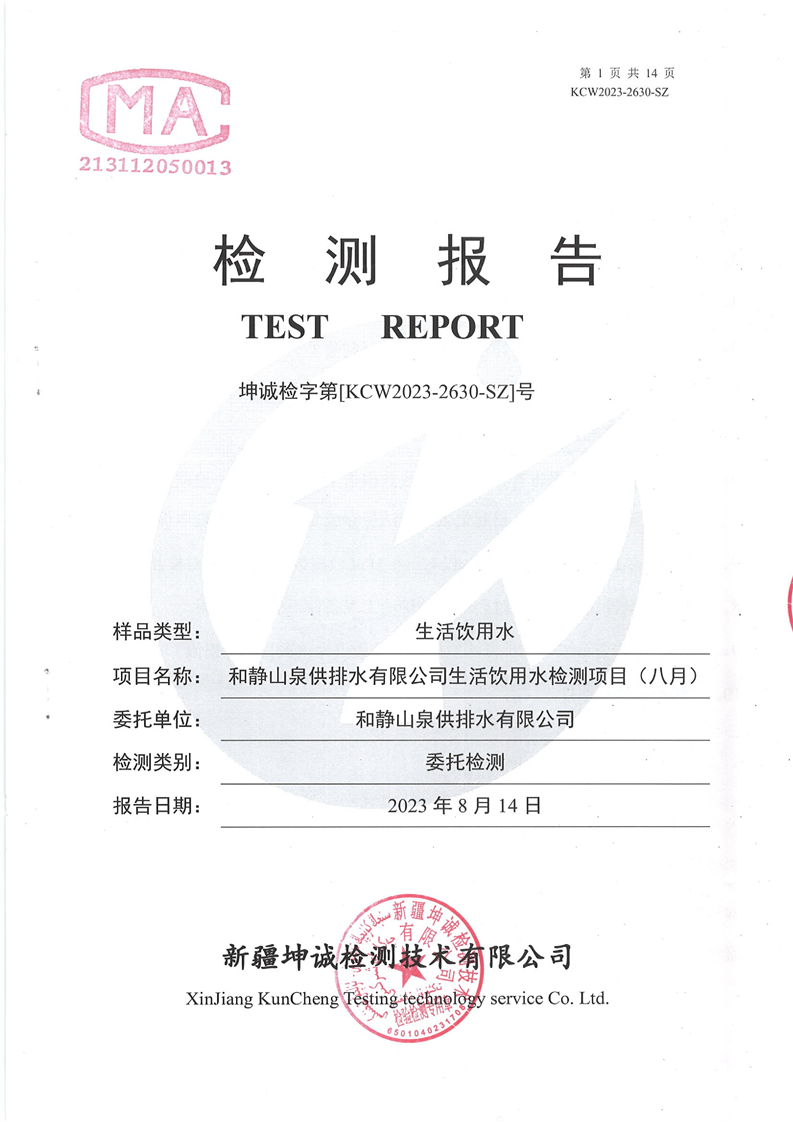 2023年和静山泉供排水有限公司生活饮用水出厂水检测报告(8月)