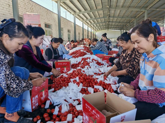 据统计,阿日勒村日均通过线上直播销售沙瓤西红柿达4000余箱,日均总收入超7万元,不仅让西红柿卖出了好价钱,还带动了村内100余名村民参与分拣、打包、物流等工作,实现“家门口就业”。不少网友在收到货后,还通过直播间留言、短视频评论等方式“晒单”,形成了“直播带货+口碑传播”的良性循环。