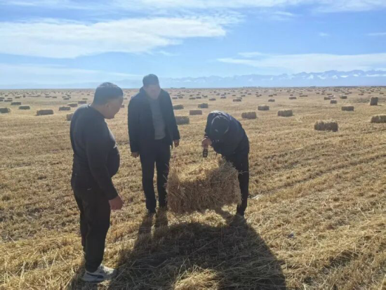 巴音郭楞乡第一时间联动气象部门建立天气动态通报机制,通过微信群推送、入户走访宣讲等方式,向牧民普及防灾备料知识与草料储存技术,引导牧民抢抓晴好天气开展储备工作。组织畜牧兽医站技术人员与村干部深入草场、养殖户,全面摸排辖区牲畜存栏量、现有草料储备量及缺口情况。